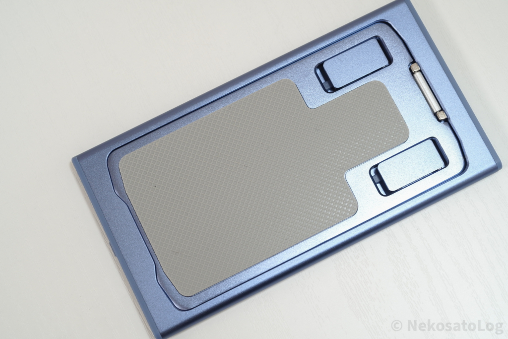 表の方には、滑り止めと、スマホなどを置くための爪があります。