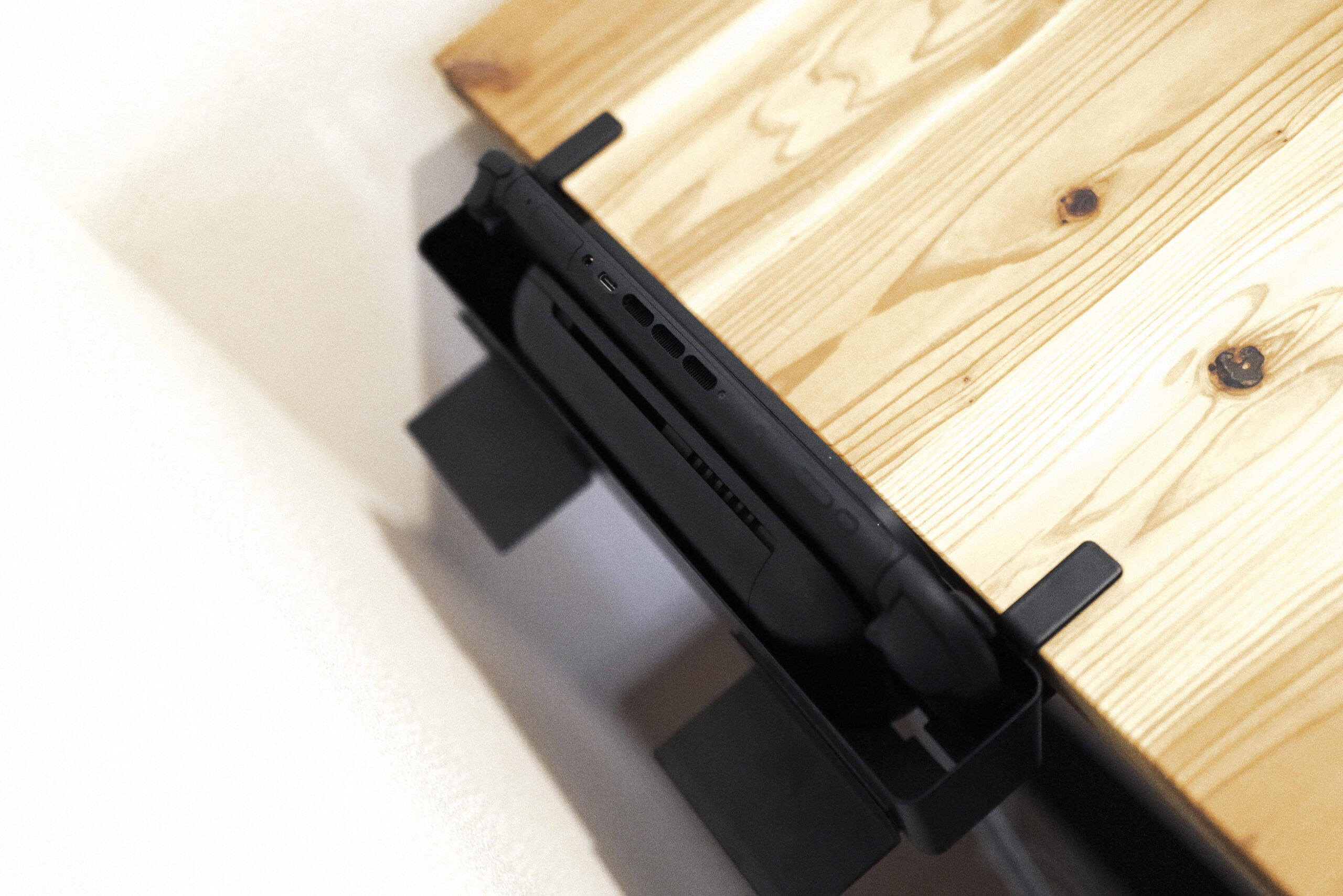 そしてNintendo Switch2は、山崎実業 テーブル横 リモコンラックに収納した。