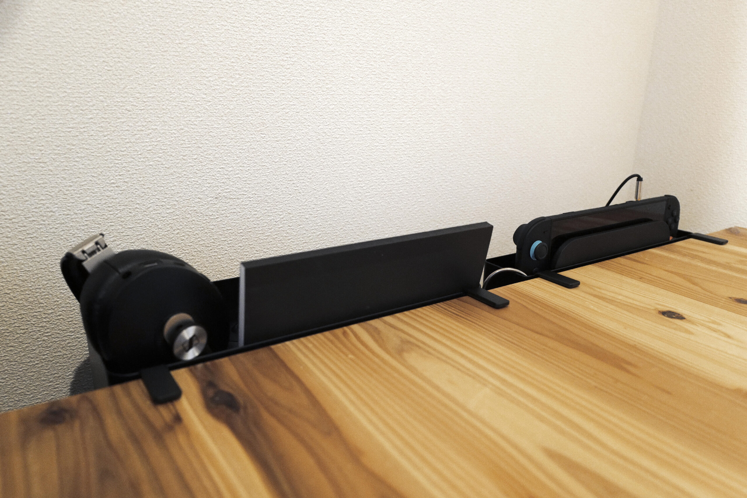 デスク上を出来るだけ少なくしたくて山崎実業 テーブル横 バスケットを追加で購入した。