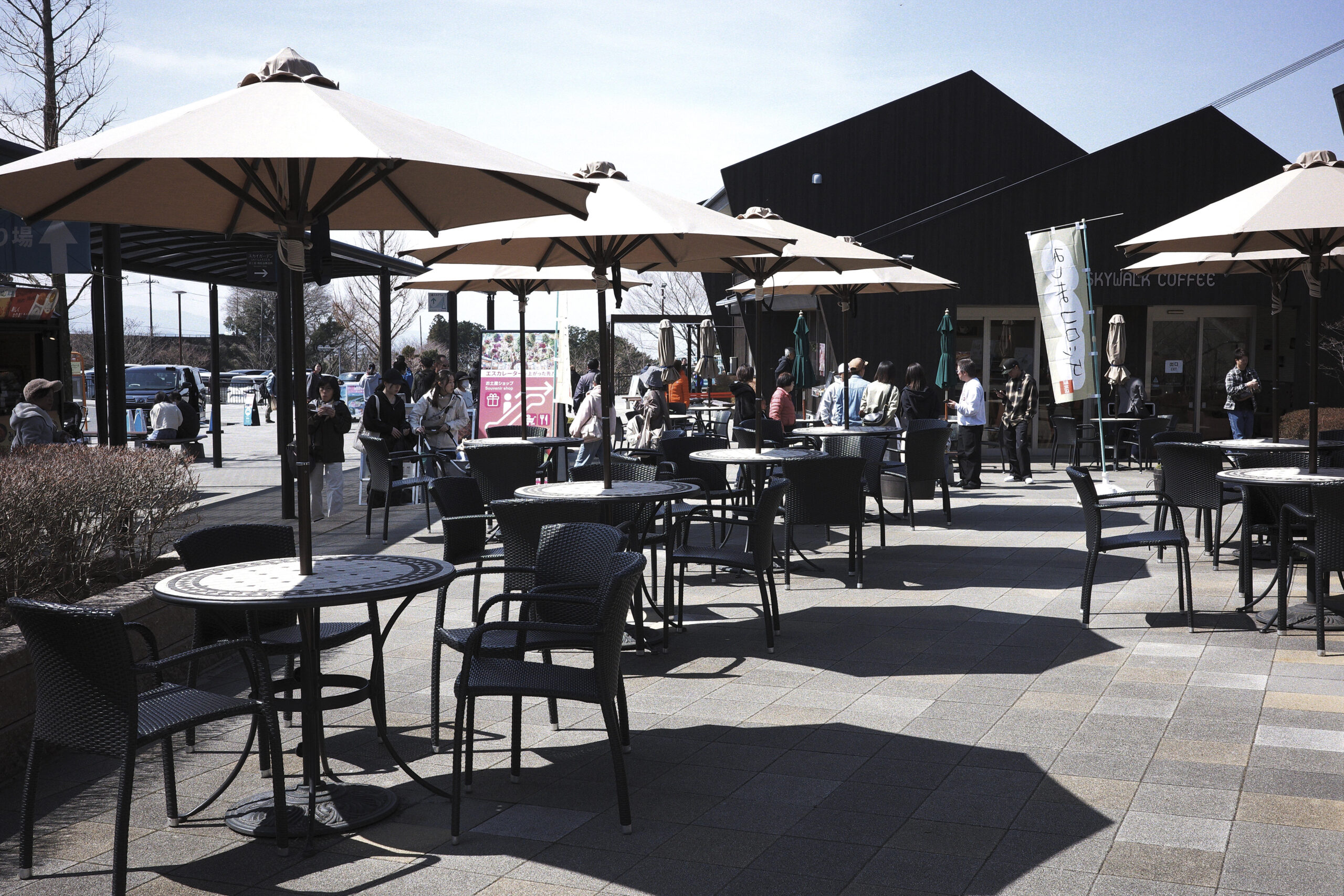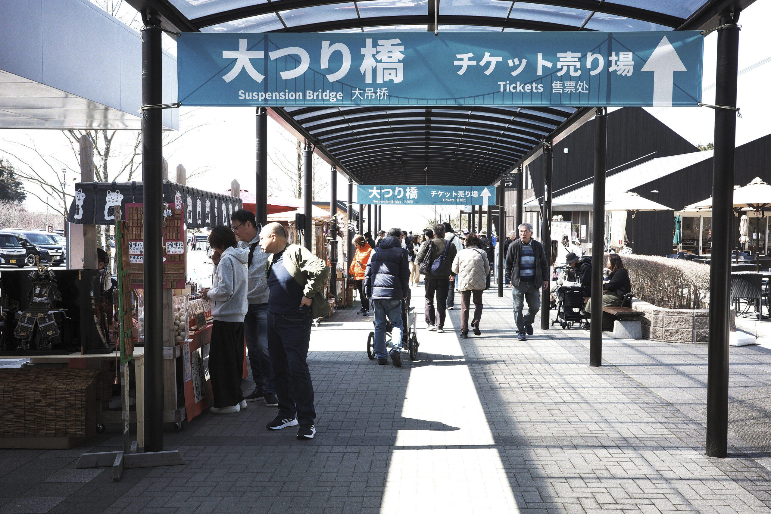 一度、吊り橋は渡ってお腹いっぱいだったのもあり、今回は入場ゲート前までしか行かなかったが、相変わらず多くの人で賑わっていた。この日は晴れていて富士山も見えていたから渡った人たちは良い思い出が出来たに違いない。